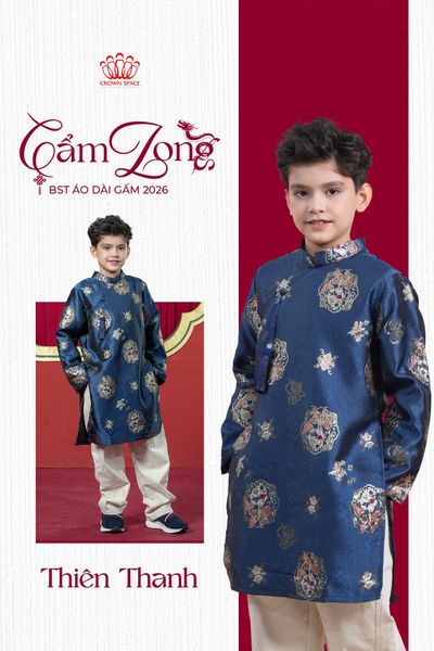 Áo dài gấm luôn là lựa chọn mang nhiều ý nghĩa trong dịp Tết, đặc biệt với bé trai - khi trang phục không chỉ cần đẹp mà còn thể hiện sự chỉn chu, vững vàng và khí chất nam nhi. Năm 2026, Crown Space đem đến BST Áo Dài Gấm Cho Bé Trai - Cẩm Long, lấy cảm hứng từ vẻ hoa lệ của gấm vóc và khí phách uy nghi của Rồng thiêng.