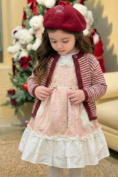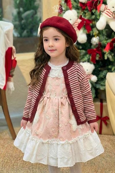 Sự kết hợp giữa hồng pastel ngọt ngào và đỏ mận ấm áp là lựa chọn rất phù hợp cho mùa Giáng Sinh. Gam màu này vừa giữ được không khí lễ hội, vừa giúp bé trông dịu dàng, trong trẻo và dễ thương hơn khi chụp ảnh Noel.