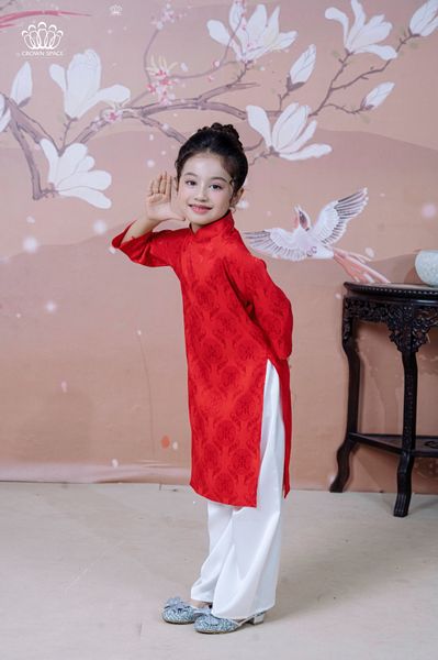 Áo dài là biểu tượng không thể thiếu trong ngày Tết cổ truyền. Mẫu áo dài từ Crown Space sẽ giúp bé tự tin, rạng rỡ khi đi chúc Tết hoặc tham gia các buổi họp mặt gia đình.